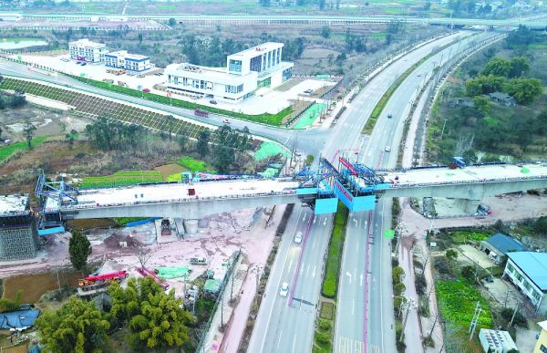 2月17日,记者在成达万高铁南充嘉陵江特大桥引桥上跨顺蓬营一级公路主跨连续梁浇筑现场看到,长100米的主跨迈入合龙施工阶段。四川公路桥梁建设集团有限公司成达万高速铁路工程指挥部相关负责人介绍,春节后,工人们按时返岗复工,抓紧时间抢工期、抓进度,项目建设有序推进,预计主跨合龙施工将于4月中旬全部完成。南充市融媒体中心记者 余中华 摄影报道
