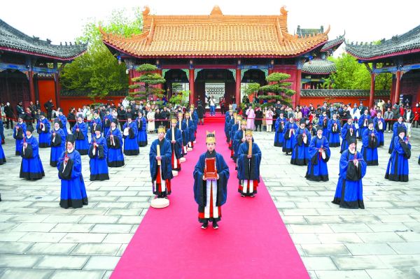 礼敬至圣先师,赓续中华文脉。3月30日,在阆中古城省级文物保护单位阆中文庙,上百人身着统一汉服,以释奠礼祭拜孔子。活动现场发布了《释奠礼服饰》标准,解读了祭孔时标准穿搭,介绍了祭孔用乐曲及八音乐器。