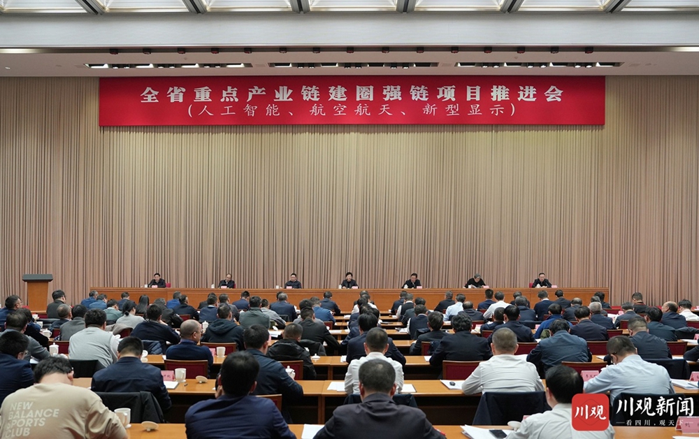 省委常委、常务副省长董卫民主持会议,副省长杨兴平、田庆盈、胡云、李文清和成都市市长王凤朝出席会议。会议分现场调研和集中会议两个环节,集中会议以视频形式开到各市(州)和50个工业强县(市、区),并在成都同步举行现场交流活动。会上,人工智能、航空航天、新型显示三条产业链链长办汇报工作推进情况,链主企业和中试平台、产业基金代表发言,相关部门对企业提出的问题作回应发言。