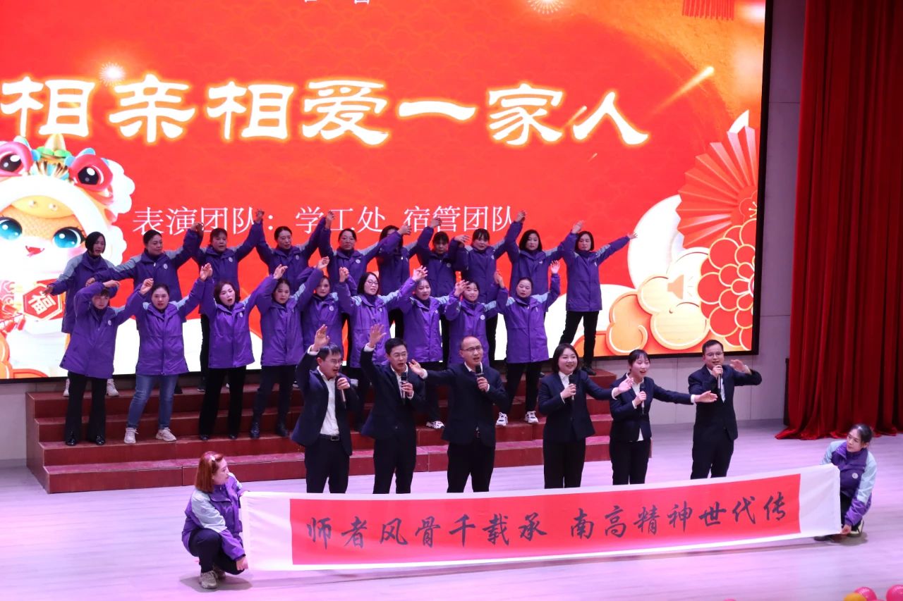最后,活动在全体人员齐唱校歌的激昂旋律中圆满落下帷幕。激昂的歌声回荡在大厅,传递着南高人的团结与奋进。此次新春联欢活动,不仅为教职工们搭建了一个展示才艺与风采的舞台,更成为凝聚校区力量的纽带,极大地增强了校区的凝聚力与向心力。让大家在忙碌的工作之余,深切感受到了学校大家庭的温暖与关怀。