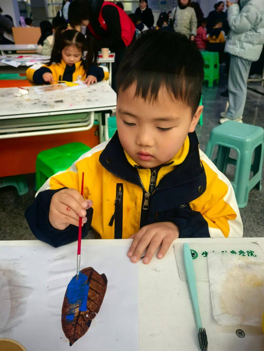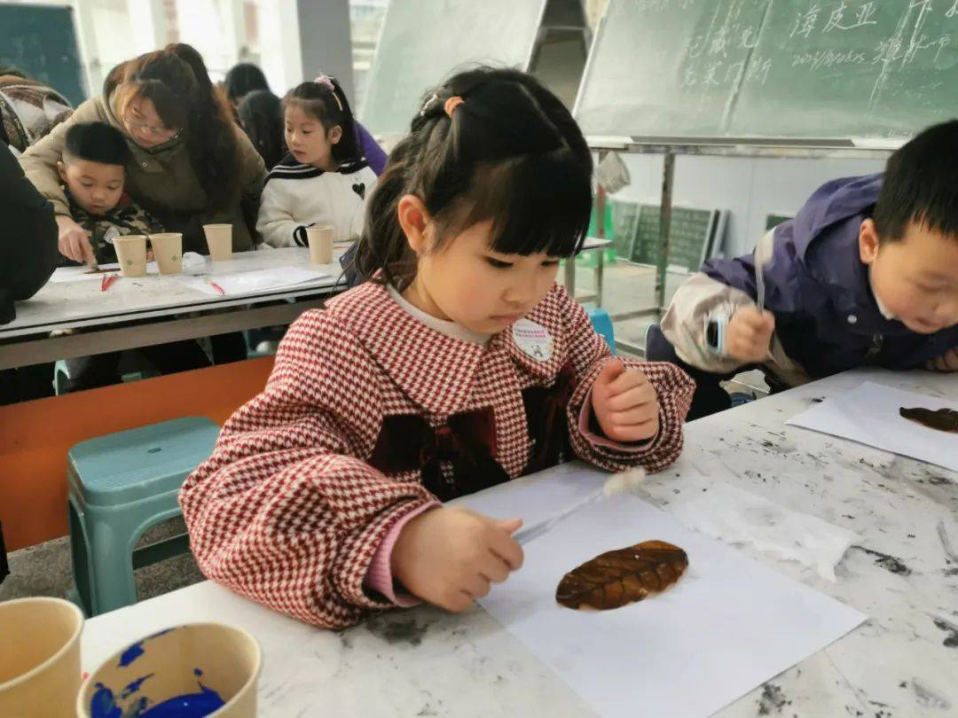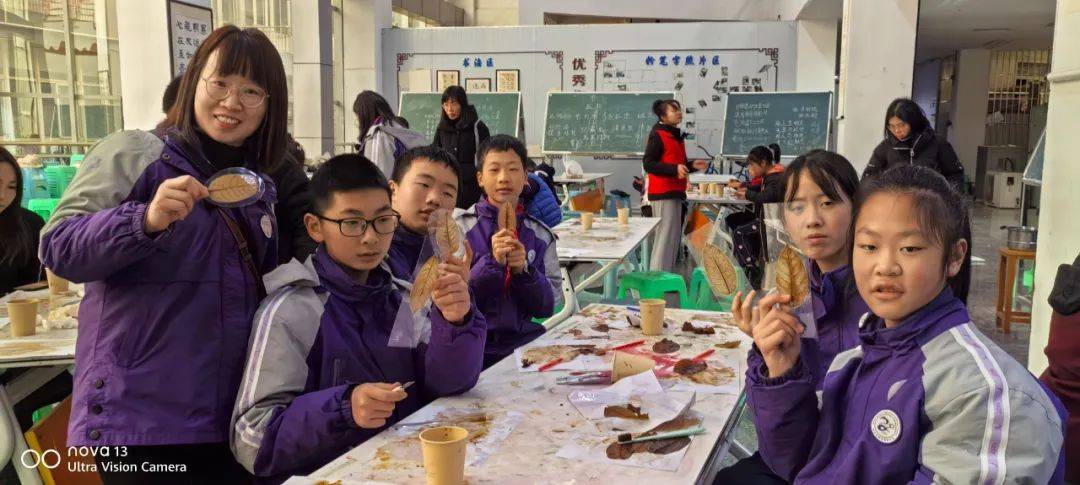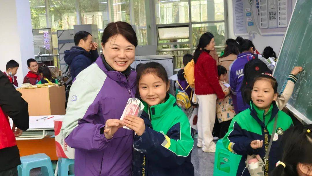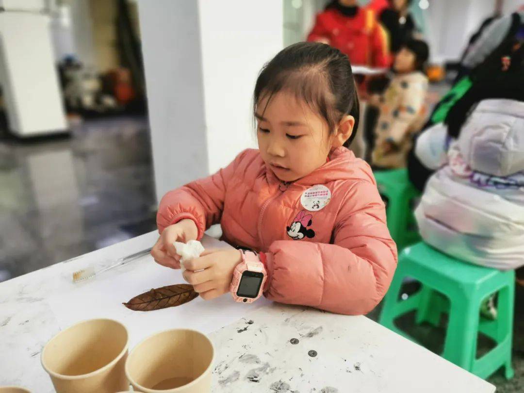 在西华师大叶脉书签制作区,孩子们屏息凝神地用牙刷清理叶片脉络,将靛蓝浸入叶脉沟壑,树脂般的脉络瞬间化作冰川裂隙。志愿者穿梭其间,看小小南高人把叶脉染成星空、朝霞与极光:“老师,我把秋天藏进书页啦!”