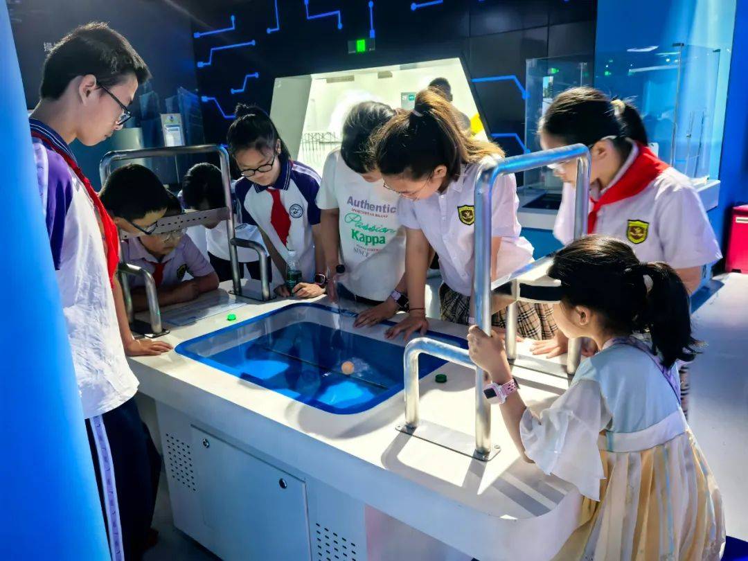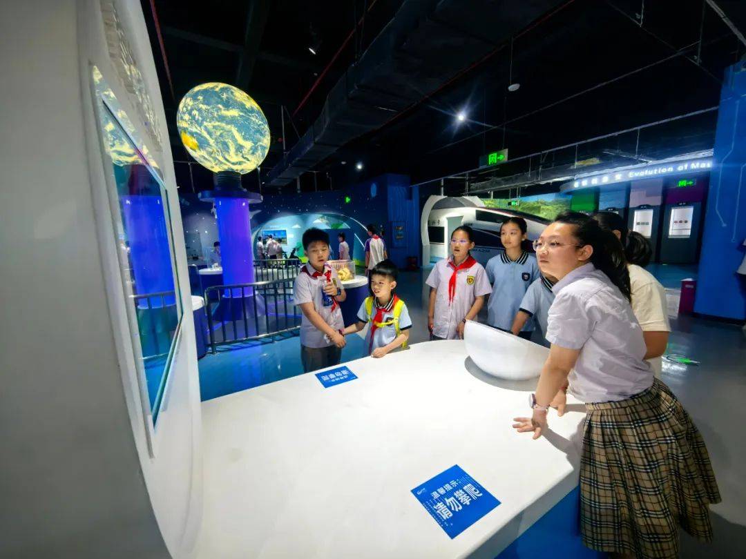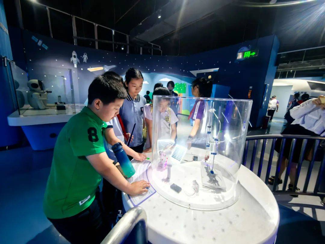 小小南高人在南充市科技馆讲解员的带领下探索宇宙和自然界的奥秘:了解宇宙的浩瀚和我国航空航天领域取得的成就,围绕趣味数学、经典物理等领域进行观察和实验,在观看机器人表演的过程中感受中国科技发展的蓬勃力量。