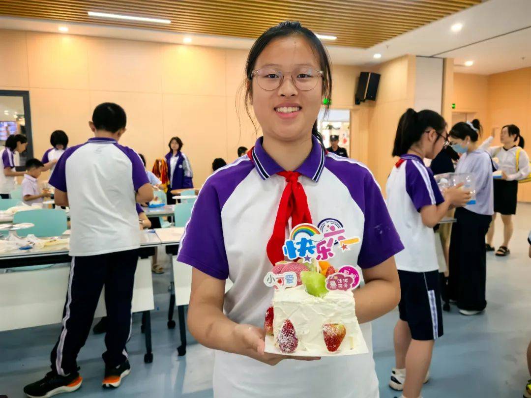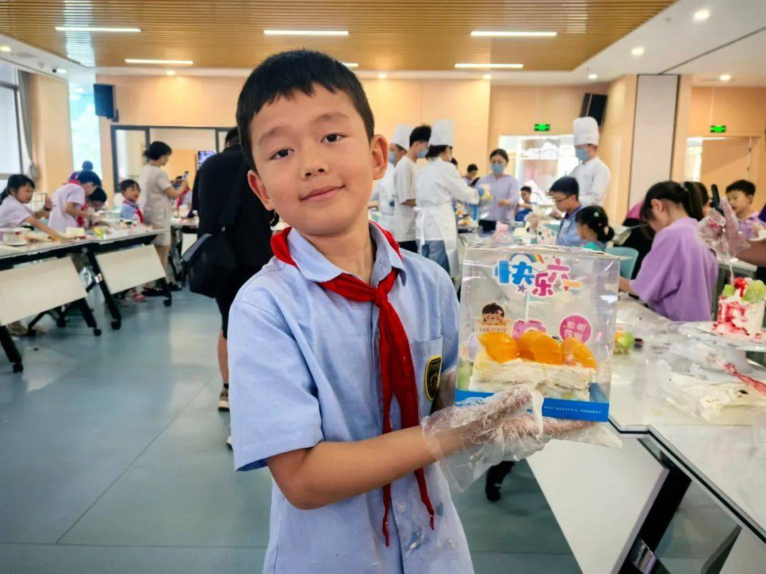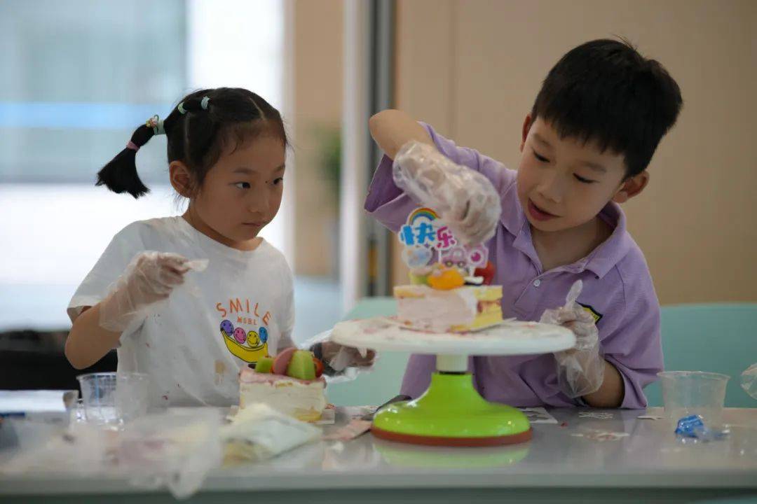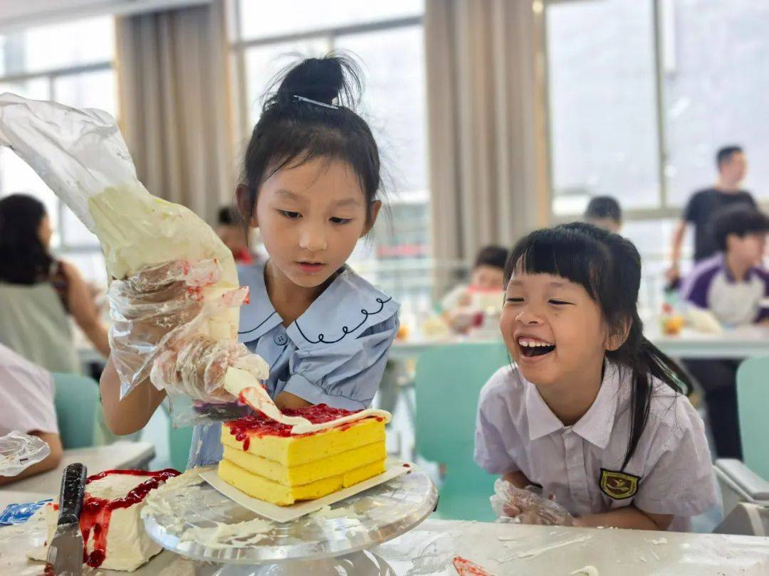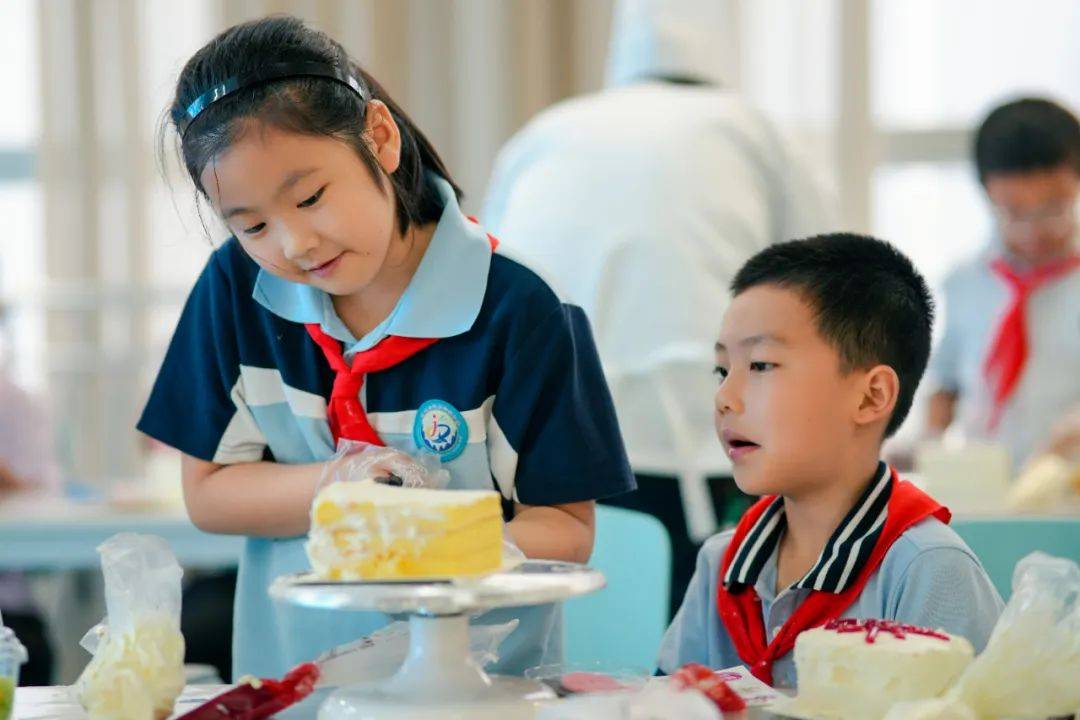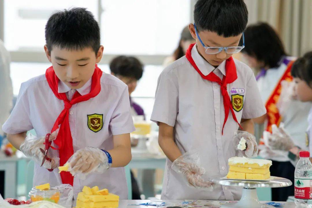 在可香蛋糕专业烘焙师的引导下,80名“小小南高人”在南充市青少年活动中心创意工坊分工协作,从蛋糕胚塑形、奶油裱花到水果拼搭与巧克力装饰,展开一场“从科学到美学”的沉浸式劳动实践,让“协作、创新、担当”的种子在南高新生代心中扎根生长。