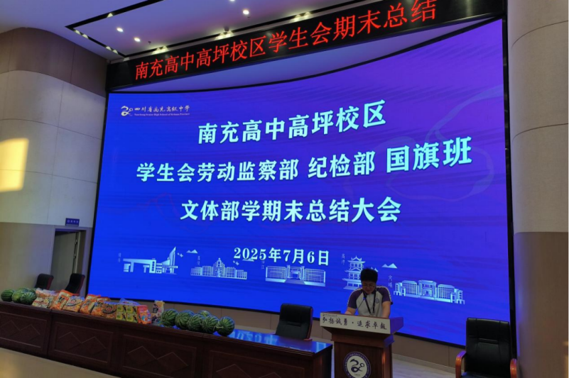 为进一步总结学期工作、表彰先进、展望未来,近日,南充高中(南高)高坪校区学工处在玉章厅召开学生会纪检部、劳动部、文体部及国旗班期末总结大会。大会由学工处程松铨老师主持,各部门学生干部及成员齐聚一堂,共同回顾一学期的成长与收获。