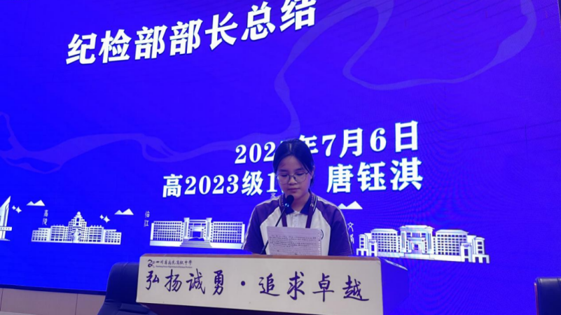 学生会纪检部部长唐钰琪从常规检查、纪律维护及部门协作等方面汇报了本学期工作,强调“公平、公正、公开”的原则,并寄语成员们继续以身作则,共建文明校园。