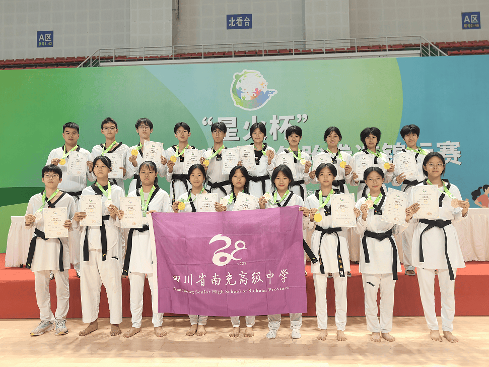 近日,由四川省体育局主办的“星火杯”2025年四川省青少年跆拳道锦标赛在宜宾市举行,南高跆拳道队的同学们在1012名参赛选手中脱颖而出,斩获金牌8枚、银牌5枚、铜牌4枚和5个第五名,12人达国家级运动员称号,其中一级运动员称号6人,二级运动员称号6人。